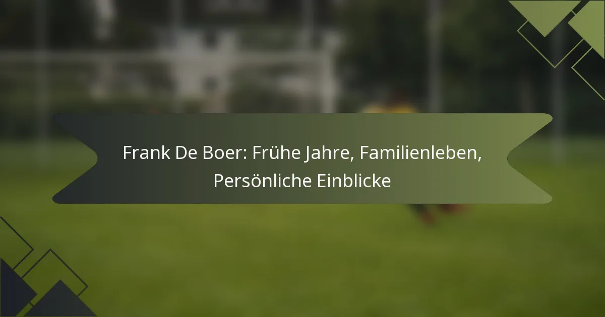 Frank De Boer, geboren in Amsterdam, wuchs in einer Familie auf, die eine tiefe Leidenschaft für den Sport vermittelte, was seine Ambitionen im Fußball maßgeblich beeinflusste. Sein Familienleben war entscheidend für die Prägung seines Charakters und seiner Werte und bot die Unterstützung, die seine Resilienz und seinen Wettbewerbsgeist während seiner beruflichen Laufbahn gefördert hat. De Boer betont die Bedeutung dieser grundlegenden Erfahrungen für die Entwicklung seiner Führungsfähigkeiten und seines moralischen Kompasses.